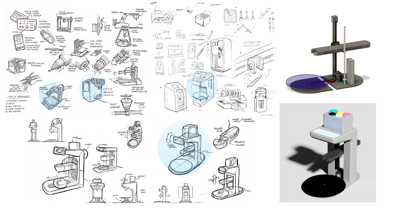 SIT method was applied to each individual component of a standard 3D printer to ideate new and creative functions it could hold. We also looked into many emerging technologies that we could incorporate into our printer.