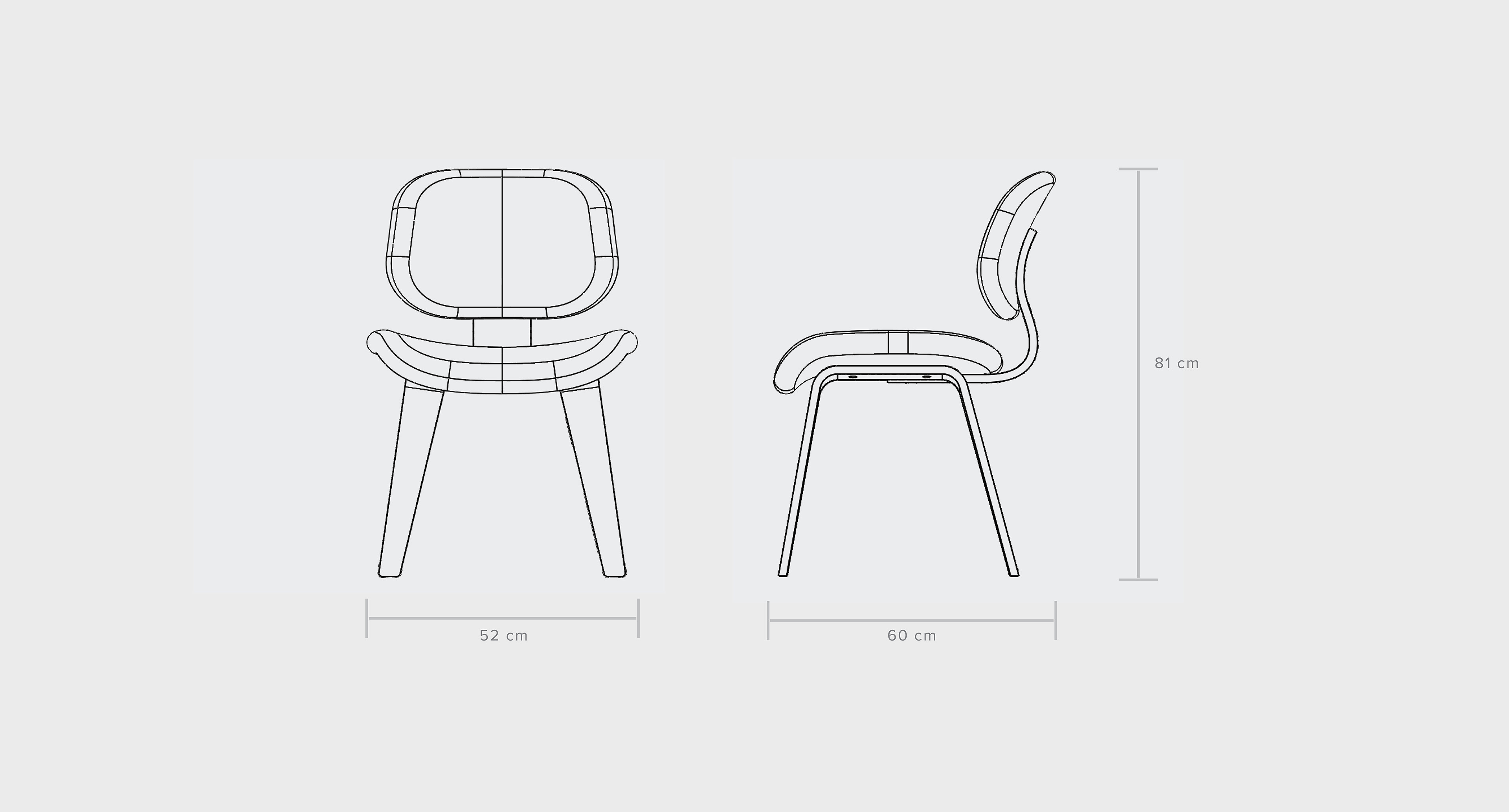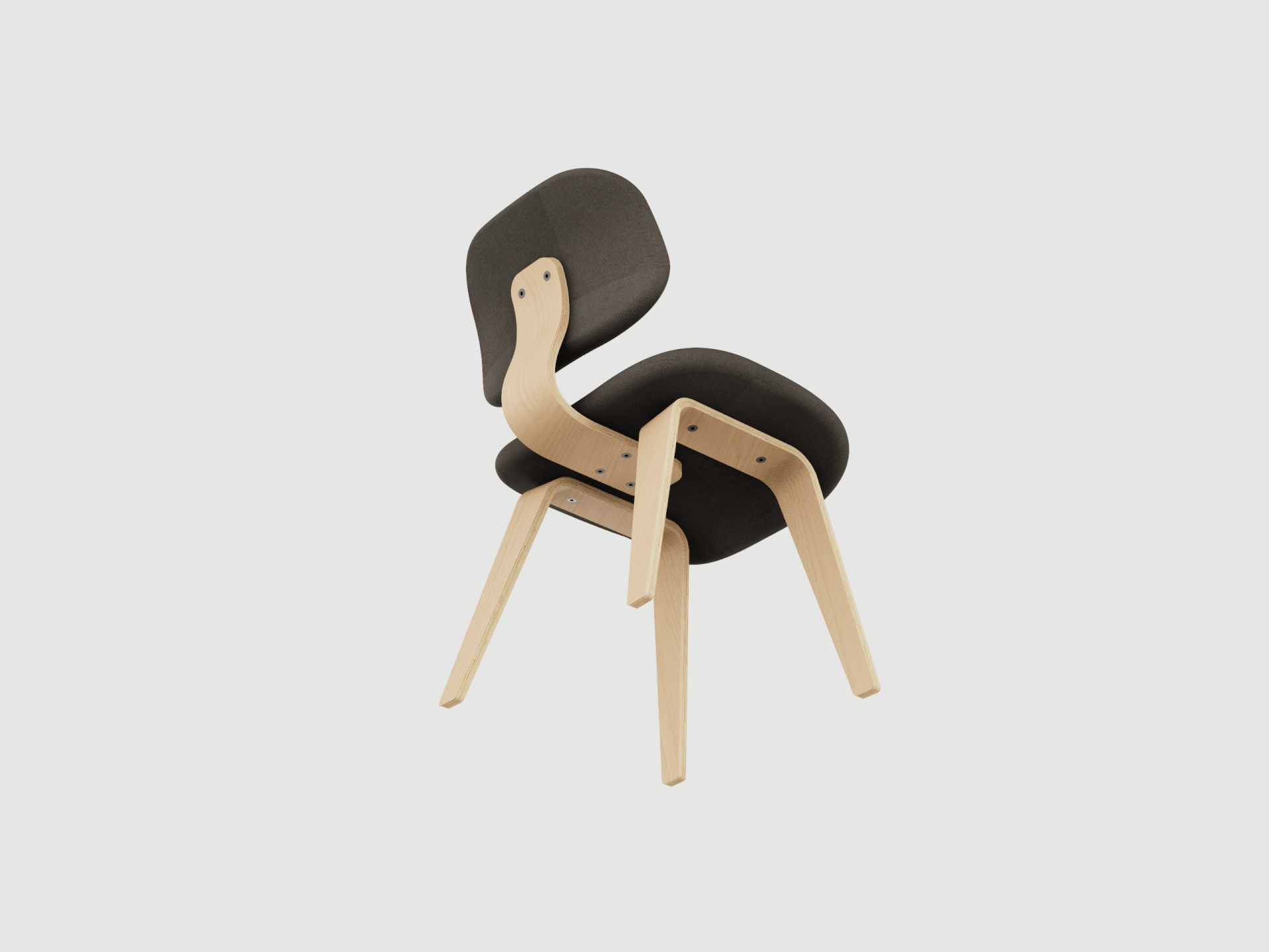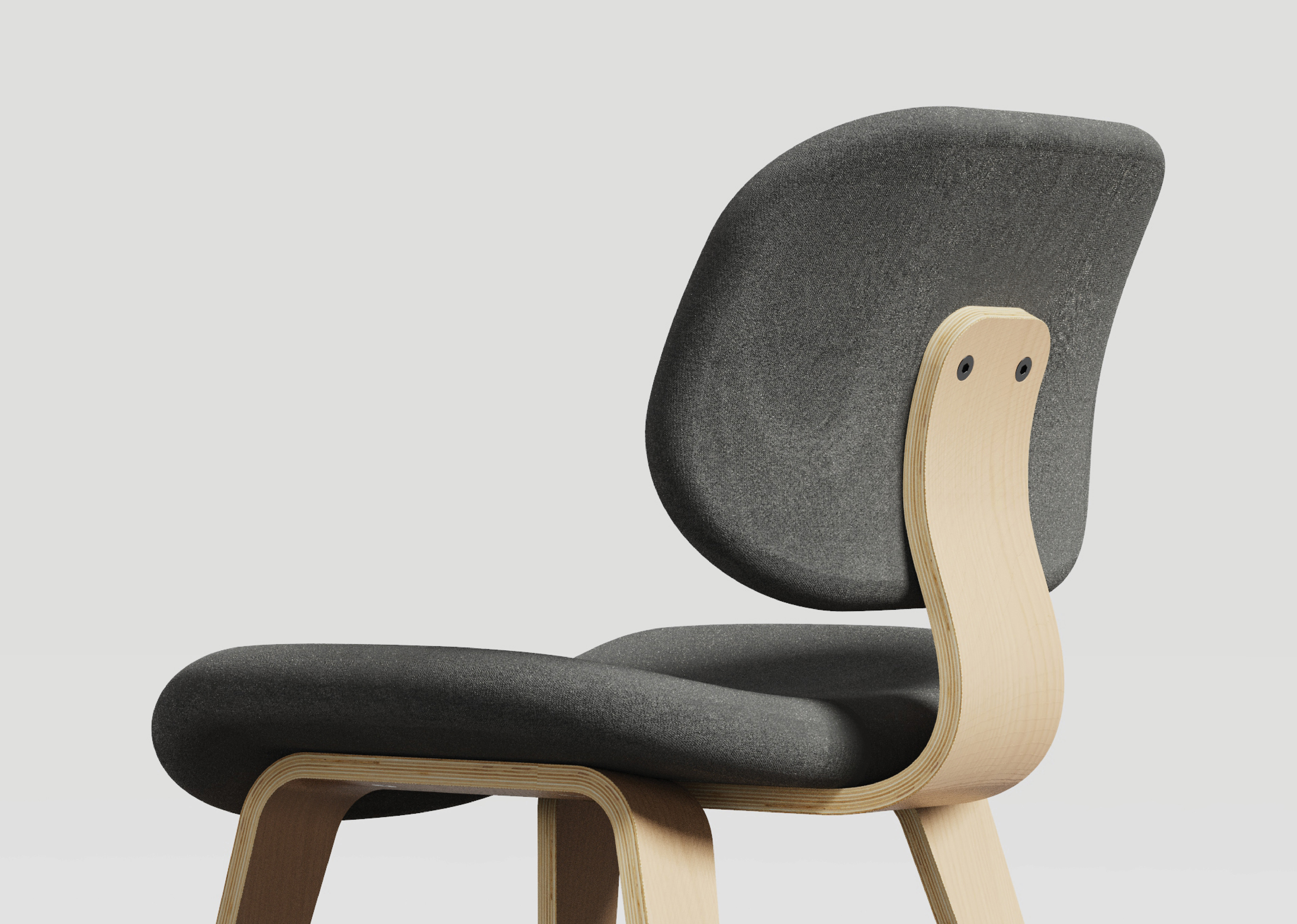 Kota is inspired by Scandinavian simplicity in furniture design. It has two laminated wooden legs and a connector piece attaching the seat and back cushions. The cushions are shaped by laminated wood inside, creating an ergonomic form to enhance comfort for users.